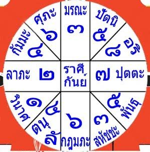 - ลัคนาสถิตราศีกันย์ → ดาวพุธ (๔) เป็นดาวเจ้าเรือนตนุลัคนาและเป็นดาวเจ้าเรือนกัมมะ(การงาน)