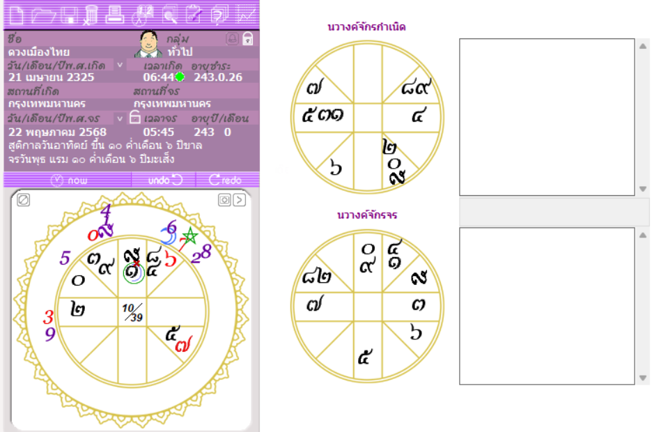 จุดเด่น: ประเทศไทยจะมีโอกาสทางเศรษฐกิจใหม่ ๆ หากผู้นำมีวิสัยทัศน์และนโยบายชัดเจน มีแนวโน้มได้ลาภจาก “โลกใหม่” เช่น เทคโนโลยี, เศรษฐกิจออนไลน์, นักลงทุนต่างชาติ ความเสี่ยง: หากบริหารผิดทิศ หรือตัดสินใจตามกระแสโลกโดยไม่วางแผนดีพอ อาจเสียลาภ โอกาสเกิด “ลาภลวง” หรือ “นโยบายที่ดูเหมือนให้คุณ แต่ให้โทษในระยะยาว” ความขัดแย้งเชิงนโยบาย เช่น ฝ่ายการเมือง vs ฝ่ายข้าราชการประจำ อาจส่งผลต่อการเดินหน้าประเทศ สรุปคำพยากรณ์ตรีวัย (๒๑ ธ.ค. ๒๕๖๖ – ๒๑ เม.ย. ๒๕๗๕) “ดวงเมืองไทยอยู่ในช่วงตรีวัยลาภะ (๘) จรสถิตวัยกัมมะ หมายถึง โชคลาภและรายได้ของประเทศขึ้นอยู่กับการบริหารของรัฐบาลอย่างชัดเจน หากผู้บริหารมีนโยบายเฉียบคม มองไกล และใช้เทคโนโลยีใหม่สร้างเศรษฐกิจ จะเกิดการเปลี่ยนแปลงเชิงบวกมหาศาล แต่หากใช้อำนาจบริหารผิด หรือแสวงหาลาภทางลัด อาจเกิดการสูญเสียครั้งใหญ่ระดับโครงสร้าง”